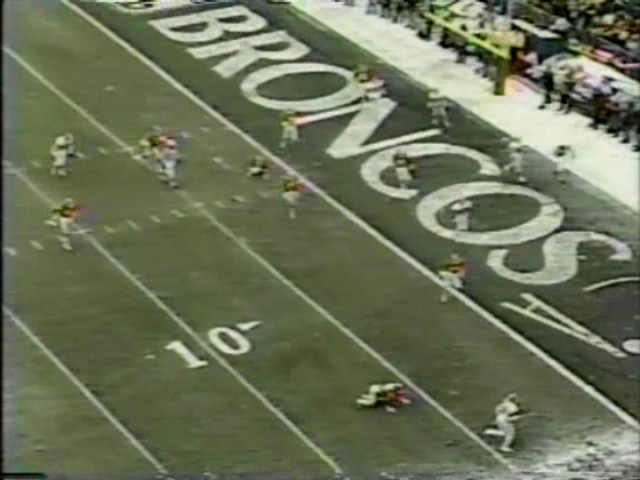 The ’86 AFC title clash took place in Cleveland at old Memorial Stadium. For some unknown reason—perhaps as a gesture of goodwill by Art Modell, maybe to add to the “big game” feel, or possibly just as an ironic “F___ you”—the Browns decided to decorate one of their end zones with the Broncos’ name, colors, and logos.