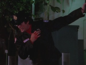 3. Upon catching up to the bad guys . . . wow . . . where to start?  Michael attempts to arrest them based on a charge of treason.  Again, I have no idea how a local cop has jurisdiction in a treason case, nor am I clear on how stealing from a private company would fit the definition of “treason.”  Those points are moot, because Tanya betrays Michael when she helps the people who infiltrated the chemical company, including Fred Wilson . . . you know what?  It’s really stupid.  The important part is that Tanya shoots Michael in the face.