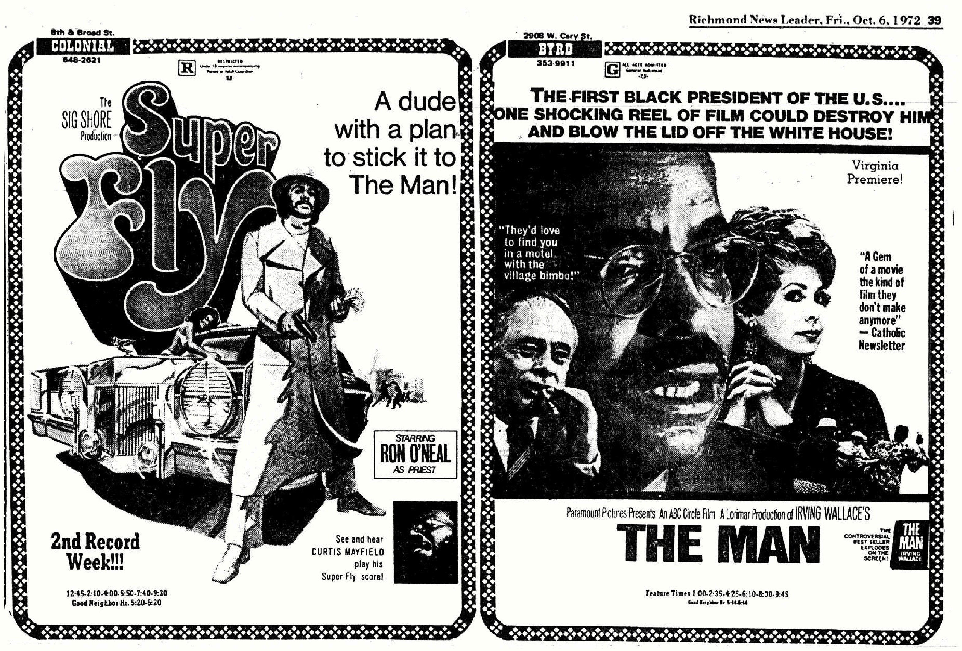 I mentioned recently that I had been working on a couple of research projects at the library. The details are unimportant (and boring), but the research involves perusing a lot of old newspapers on microfilm (or microfiche—I don’t know the difference). One of the best parts about this activity is coming across amusing cultural artifacts. For example, this unfortunate positioning of the advertisements for two movies.