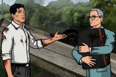 Good Stuff: “I wouldn’t say ‘herd’” . . . The montage of all of the coworkers Archer has alienated. Which is to say—all of Archer’s coworkers . . . “There’s going to be a line at your wake. So, shut your poutine hole” . . . “I’d rather bond with a C. H. U. D.” . . . “Ugh, WHICHEVER…of carbon’s many oxides” . . . The “favor” Archer did for Cheryl? Chlamydia . . . “We look like ‘The Ballad of the Flim-Flam Man’” . . . The conversation between Ron and Archer about “biannual” vs. “biennial” vs. “semi-annual” was the kind of stupid, nerdy banter I love . . . “Nobody’s gonna miss one beer. Or the 11 more I’m gonna drink” . . . I also love the “flexible” timeline that the show has, from the desktop computer that looks like it’s from 1983, but also has features straight out of 2013, to Ron somehow being old enough to have been in World War II and to have stolen Model As, to Archer mentioning current musical acts . . . “Not in those exact words” . . . “Shoot these degenerate pricks…starting with C. W. McCallGirl over there!” . . . “It’s just like Carol said the old Gypsy woman said!” (I love that he still calls her “Carol”) . . . “Dis tracks? Jesus Christ, why did we even fight a war?!?” . . . “RUN LIKE YOU’RE YOUNGER!”
