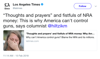 2. Stop attacking “thoughts and prayers,” especially the “prayers” part. Another recent development has been the gratuitous, angry mockery of those who say “thoughts and prayers.” This comes from two places. First, frustration over inaction in the policy realm. Second, seething condescension by non-religious people over what they perceive as superstitious nonsense that isn’t doing anyone any real good.